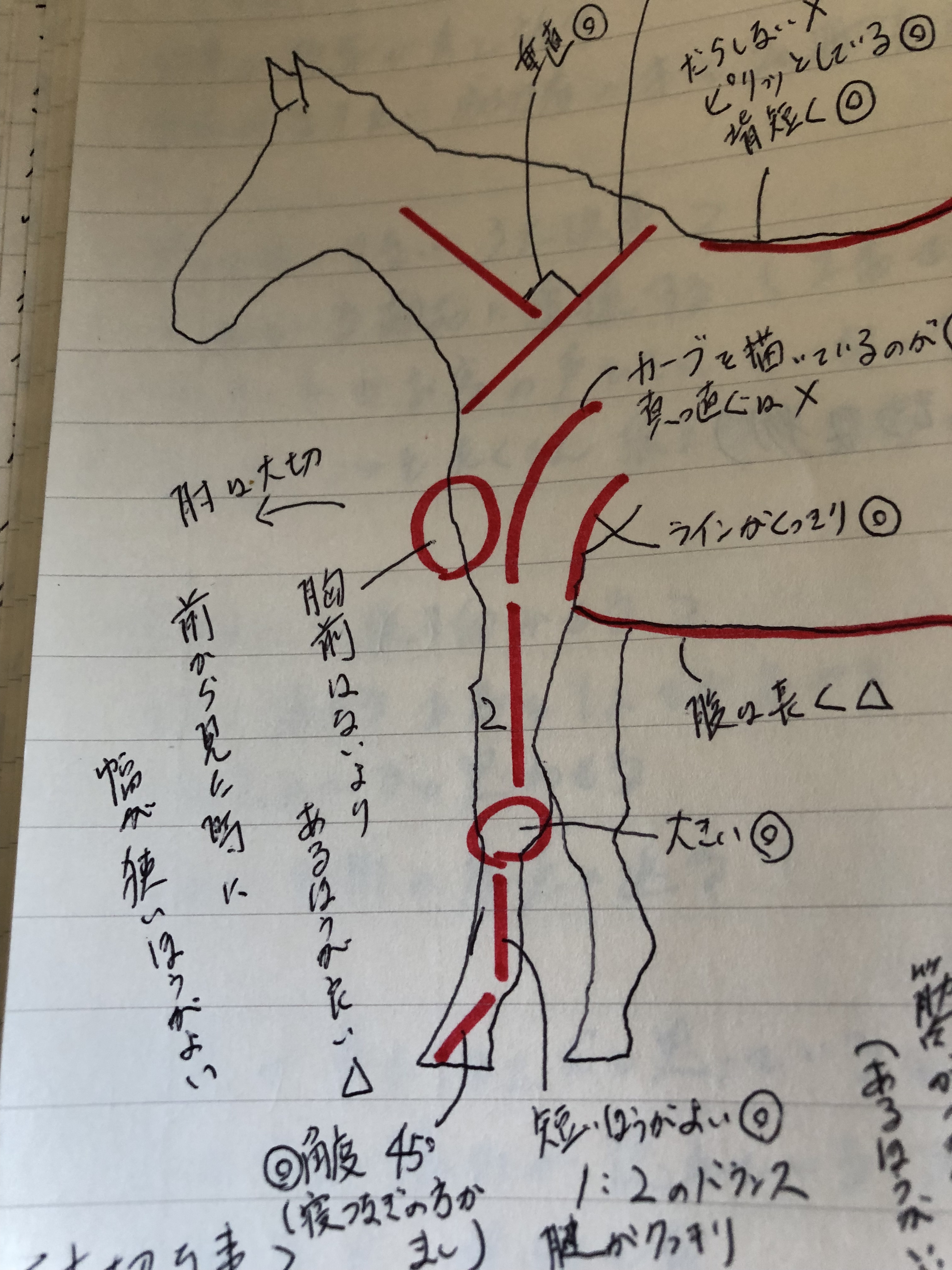 「管」とは、つなぎと球節のあいだ、「前腕」とは球節と胸のあいだで「1対2のバランス」が理想的です。